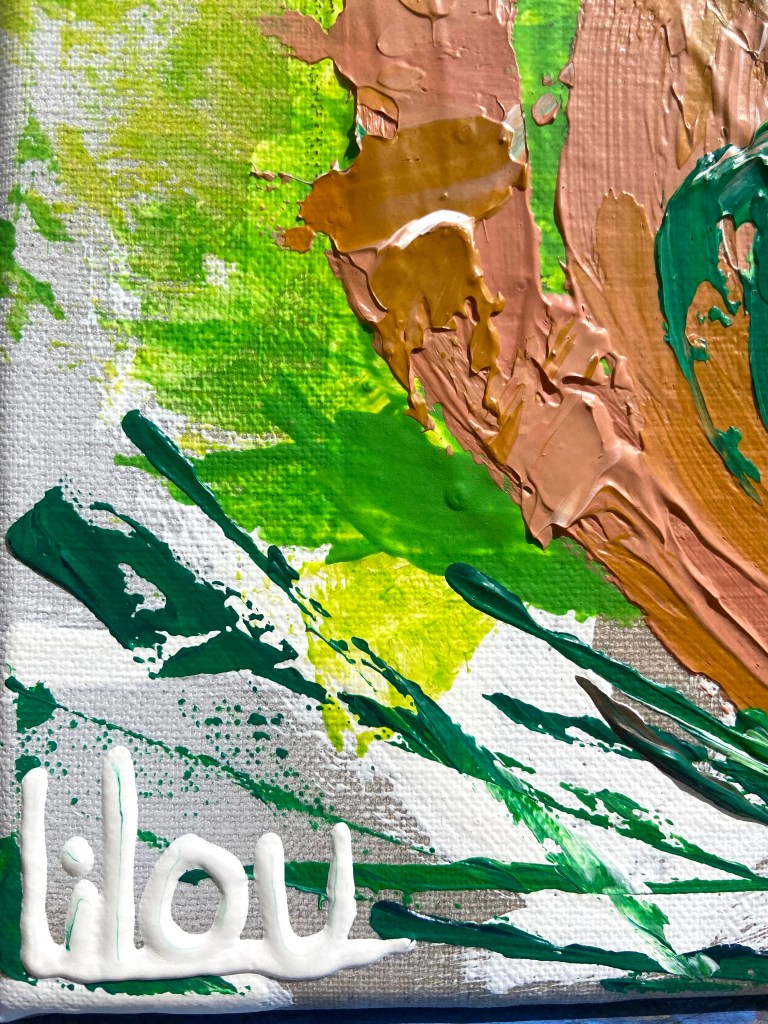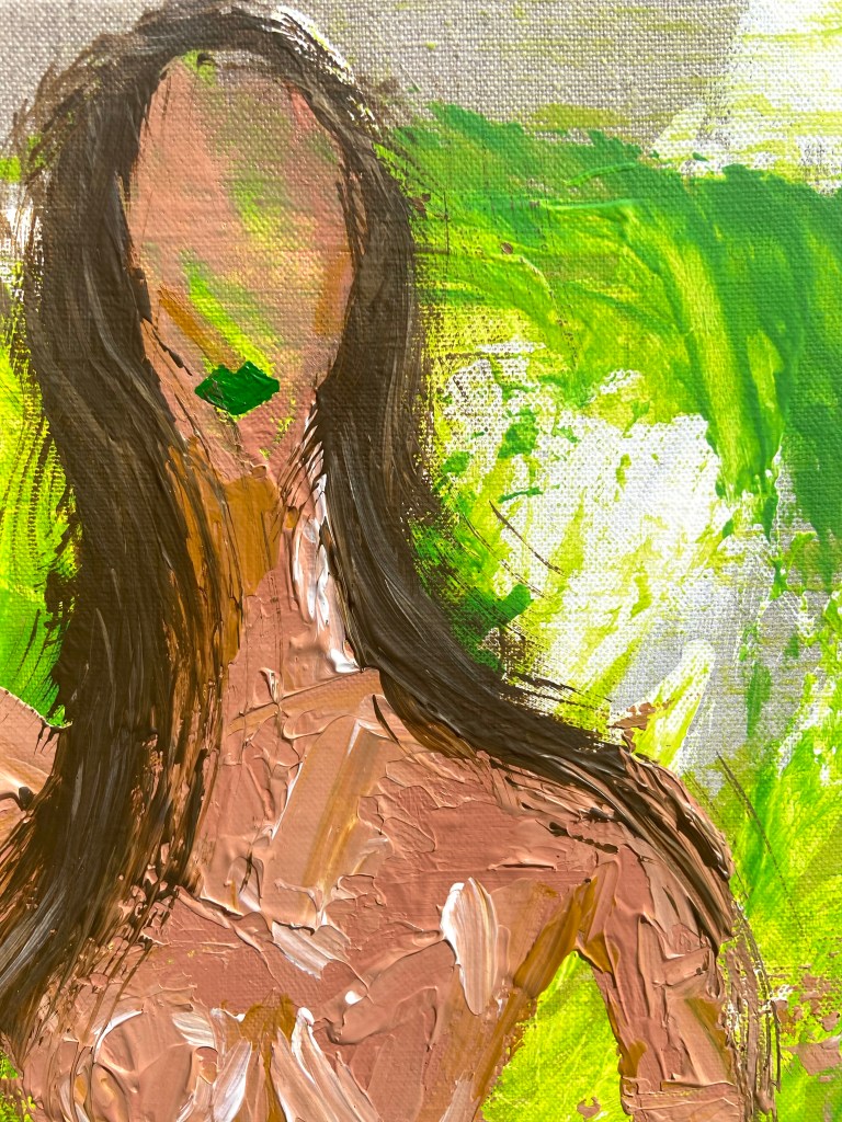 Acrylique, toile en lin naturel sur châssis, surcouche de résine.