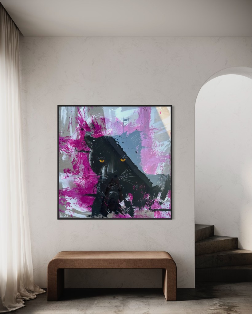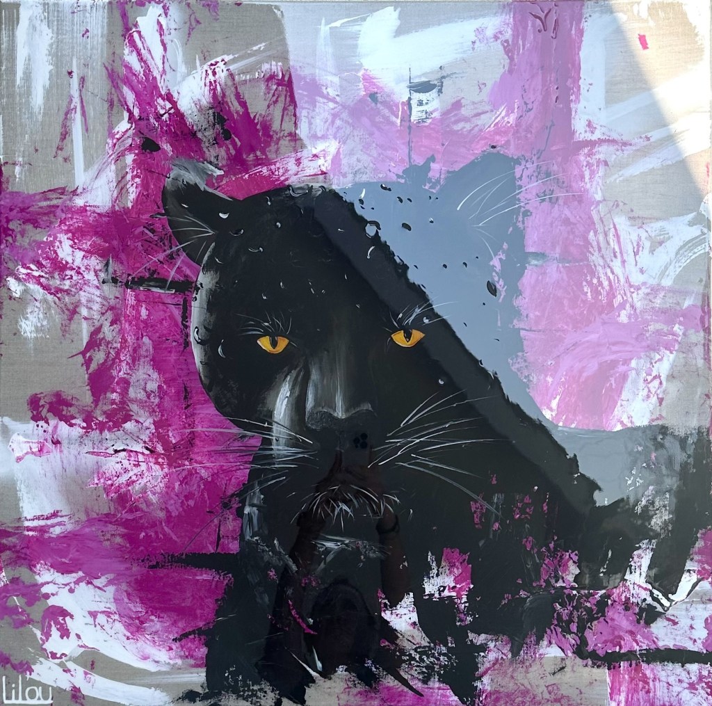Panthère noire sur fond rose